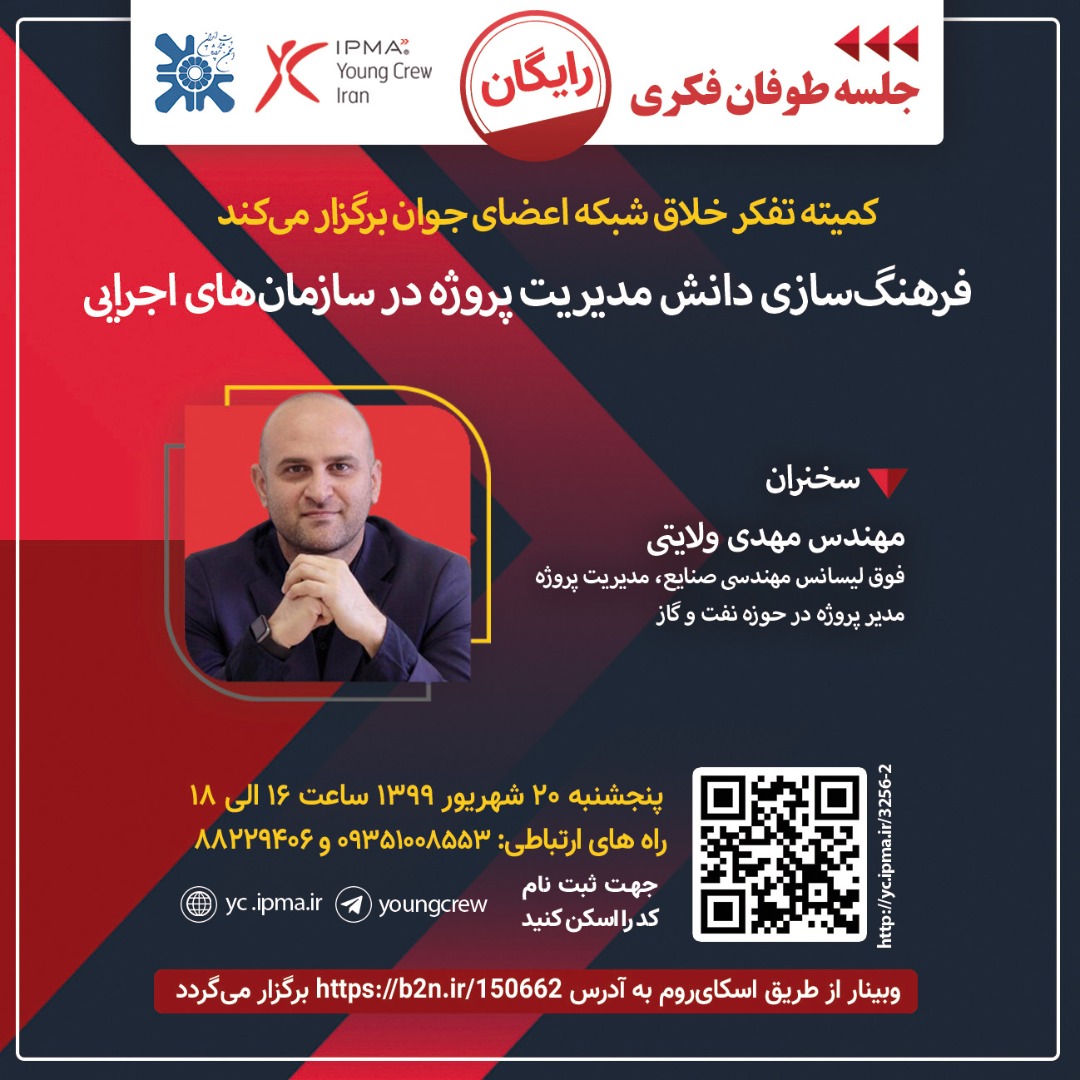 زمان برگزاری: پنجشنبه ١٣٩٩/٠۶/٢٠، ساعت ۱۶ الی ۱۸سخنران: مهندس مهدی ولایتی (فوق لیسانس مهندسی صنایع، مدیریت پروژه ؛ مدیر پروژه در حوزه نفت و گاز)