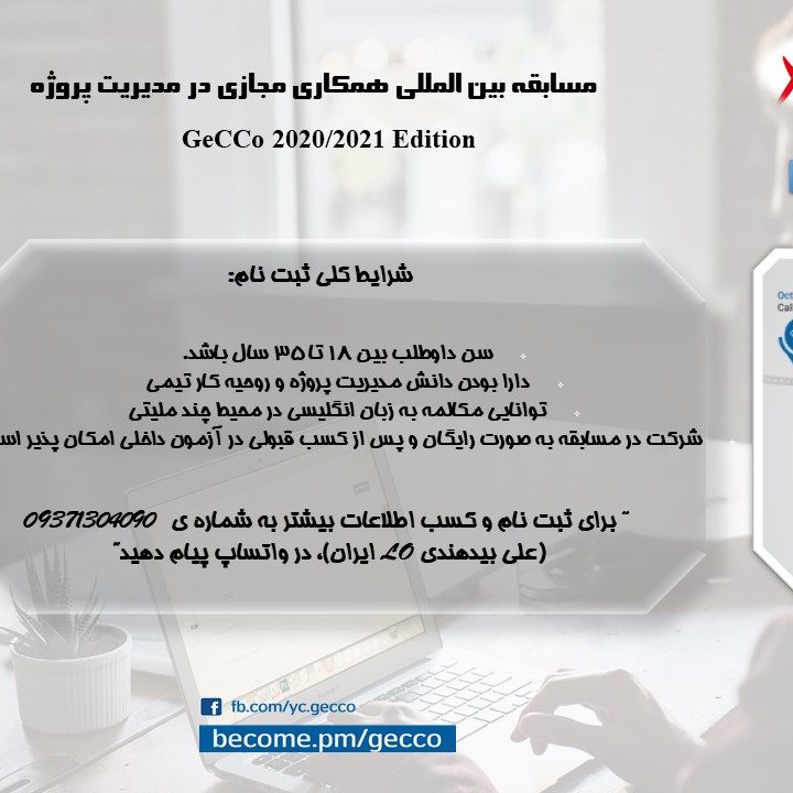 بهمن۱۱۳۹۹ آغاز ثبت نام مسابقه جهانی گکو ۲۰۲۱ اخبار, اخبار کمیته همکاری مجازی در مدیریت پروژه, رویدادهاارسال دیدگاه ادامه مطلب